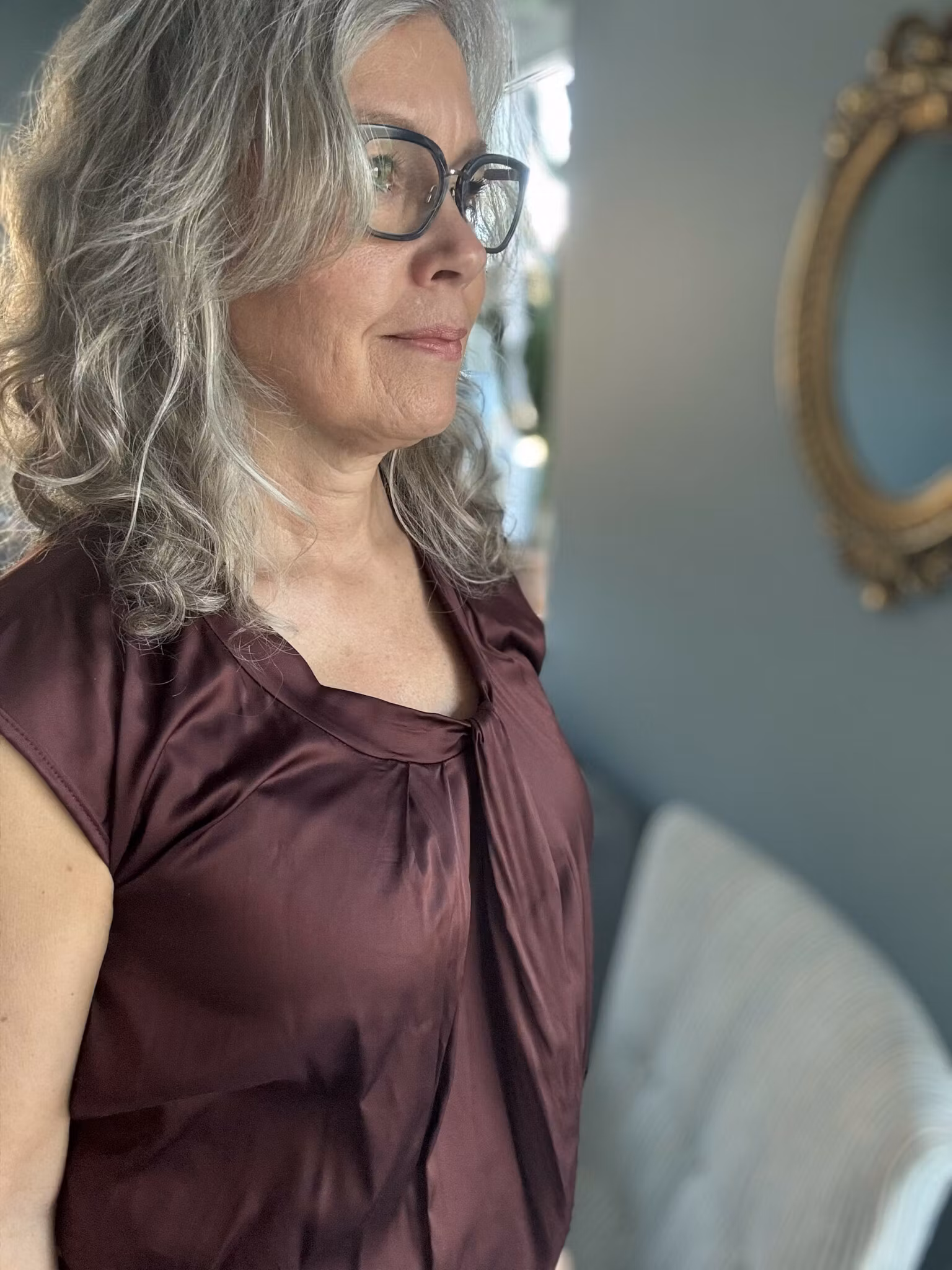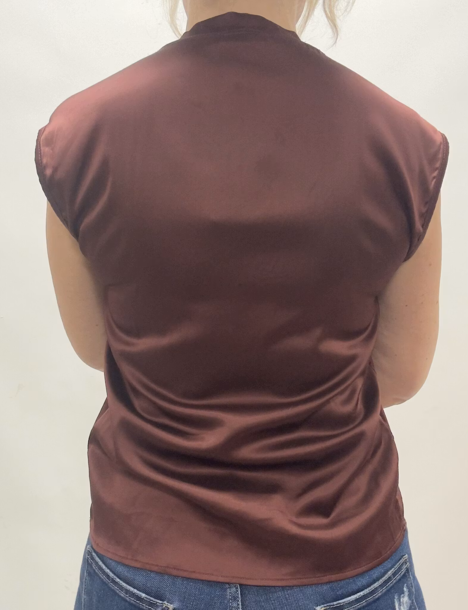 Kroppsform, eftersom den är ärmlös passar den fint till V-ringad kroppsform, men även timglas och A-form funkar fint. Den ger fin balans till kroppsform V-form, A-form, Timglas