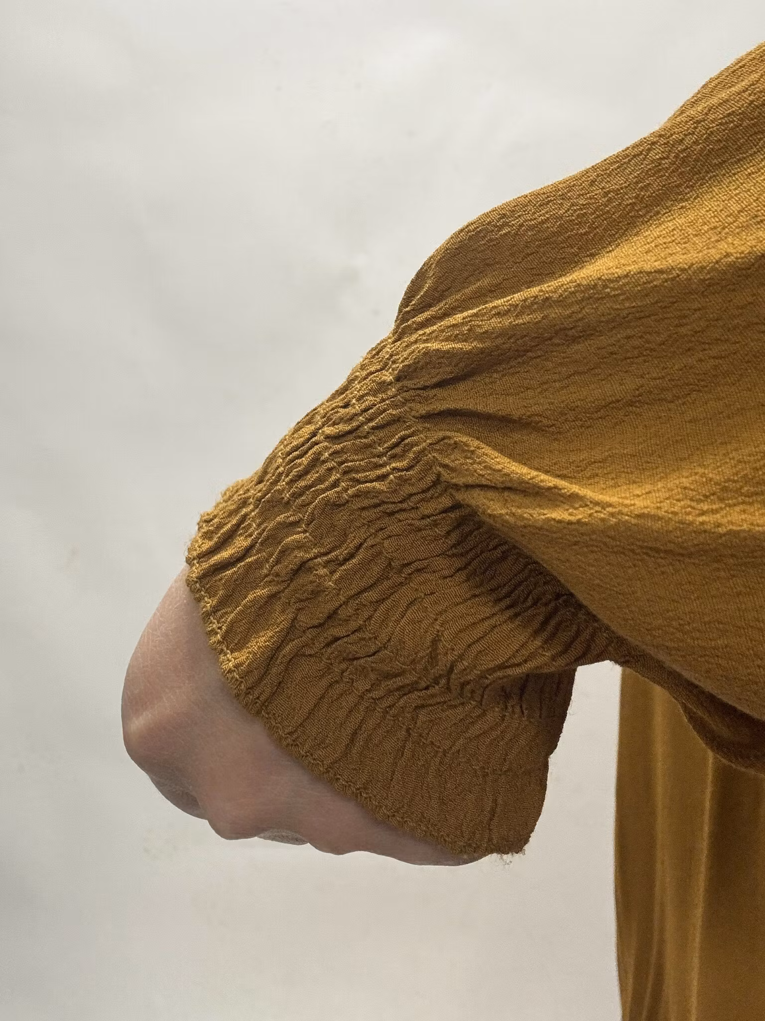En Senapsgul topp med snygg detalj i halsringning, smockresår i ärmslut. Vecket ger lite extra rymd över byst. Toppen finns 2 storlekar - M/L, L/XLMateriel : 10