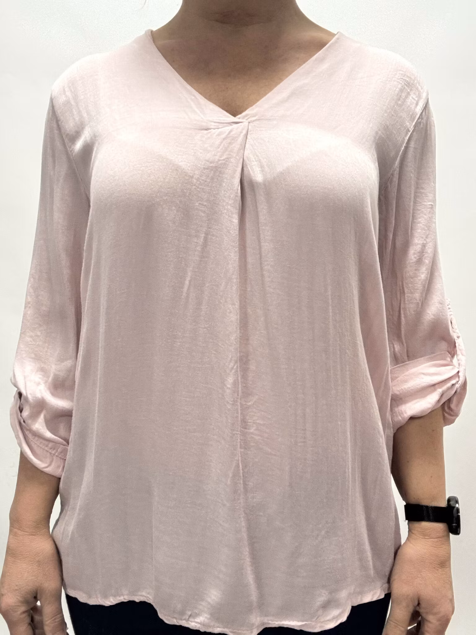 En rosa topp med veck i halsringning, ger lite extra rymd över byst. Storleken är onesize och passar st 36-42Materiel : 100% ViscoseÅrstid: SommarKroppsform, fu
